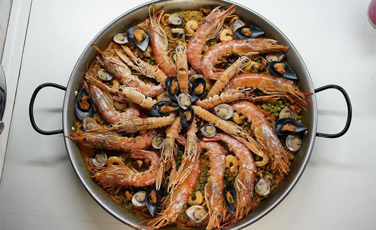 La base di ogni grande paella è la qualità degli ingredienti, e noi ci assicuriamo di utilizzare solo il meglio. Anelli di mazzancolle, cozze, vongole, scampi e gamberoni freschissimi sono i protagonisti di questo spettacolo culinario. Ogni boccone è un viaggio nei sapori del mare, un'esperienza unica per il palato.