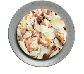 Ma la vera magia delle Mazzancolle in Saor risiede nell'accompagnamento. Le mazzancolle vengono fatte terminare la cottura insieme alle cipolle, e poi vengono arricchite con l'uvetta ammollata e i pinoli. Questi ingredienti apportano dolcezza e croccantezza al piatto, creando una sinfonia di sapori e consistenze.